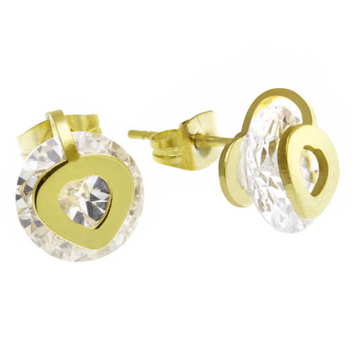 STAINLESS STEEL EARRINGS CZ IN CIRCLE SHAPE WITH HEART ALL IN IPG COLOR