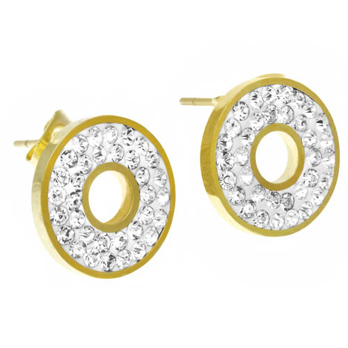 STAINLESS STEEL EARRINGS IN CIRCLE SHAPE WITH WHITE WITH CZ IN IPG COLOR