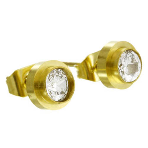 STAINLESS STEEL EARRINGS IN CIRCLE SHAPE WITH CZ IN IPG COLOR (Set with SN599)