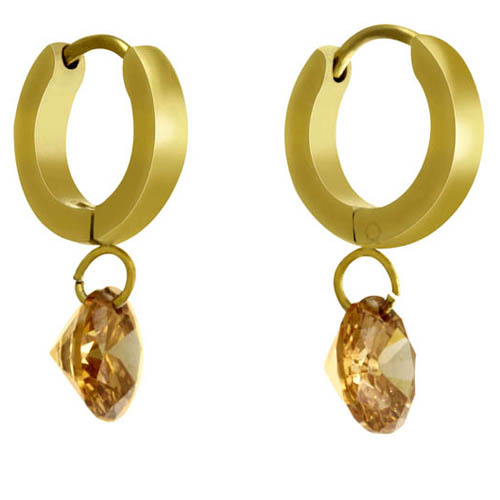 STAINLESS STEEL HUGGIE EARRINGS ALL IN IPG COLOR WITH DIAMOND SHAPE ORANGE SWAROVSKI