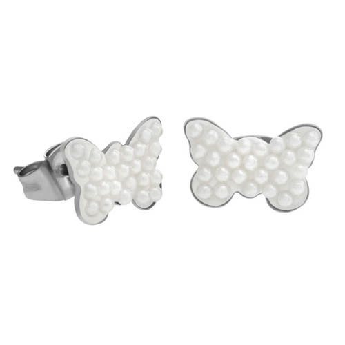 STAINLESS STEEL EARRINGS IN BUTTERFLY SHAPE WITH MICRO PEARL
