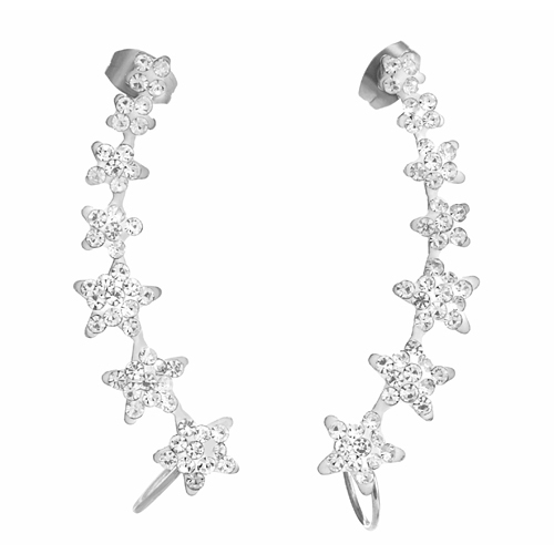 STAINLESS STEEL STUD DROP EARRING WITH STAR SHAPE FILLED WITH WHITE CZ AND CRYSTAL TIP ALL IN S/S COLOR