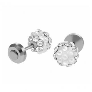 STAINLESS STEEL BABY EARRINGS ALL IN S/S COLOR IN BALL SHAPE WITH MICRO PEARL & 2 LINES CZs