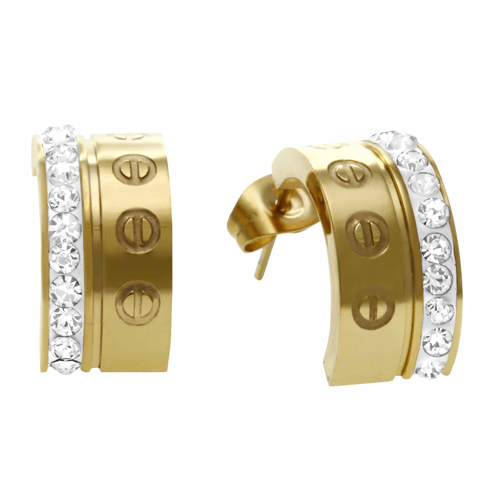 STAINLESS STEEL EARRING WITH SCREW AND CZ ALL IPG COLOR