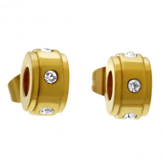STAINLESS STEEL EARRINGS IN CIRCLE SHAPE IN IPG COLOR WITH CZ.