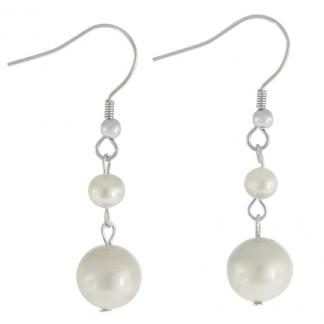 STAINLESS STEEL EARRING WITH RIVER PEARL IN GREY COLOR