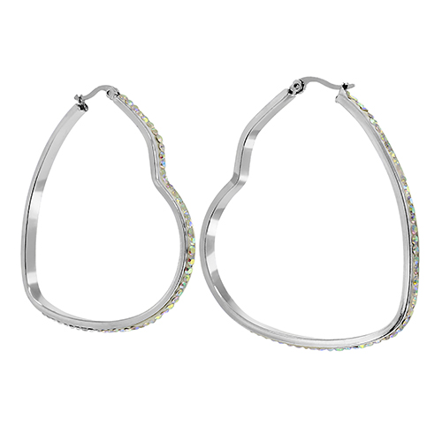 STAINLESS STEEL EARRING IN HEART SHAPE WITH 1 LINE AB STONES
