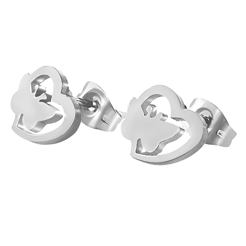 STAINLESS STEEL EARRING IN HEART SHAPE WITH BUTTERFLY