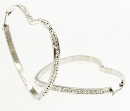 STAINLESS STEEL EARRING IN HEART SHAPE WITH WHITE CZ