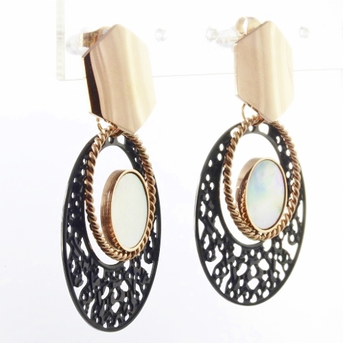 STAINLESS STEEL EARRING IN IPR AND IPB COLOR. WITH WHITE MOP SHELL.