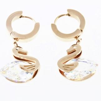 STAINLESS STEEL EARRING IN IPR COLOR WITH A SWAN AND ONE BLACK CZ