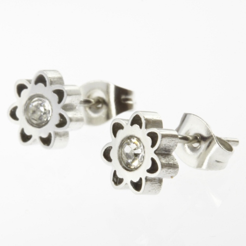 STAINLESS STEEL EARRING IN FLOWER SHAPE WITH ONE CZ