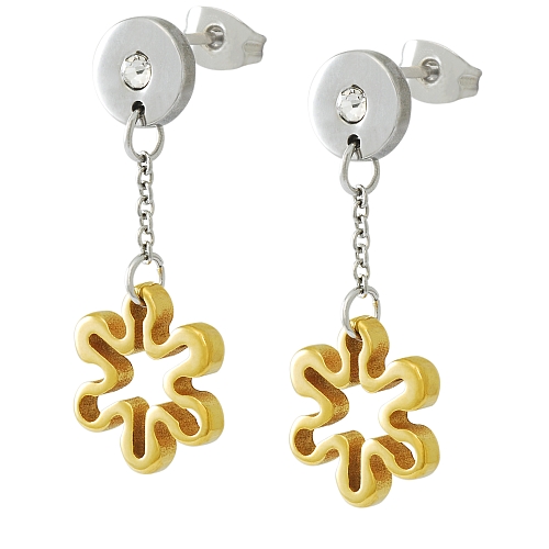 STAINLESS STEEL HOOPS EARRING IPG FLOWER WITH CZ IN IPG 2 TONES