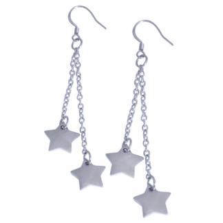 STAINLESS STEEL EARRING WITH 2 STARS CHARMS ALL IN S/S COLOR