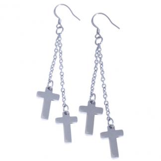 STAINLESS STEEL EARRING WITH 2 CROSS CHARMS ALL IN S/S COLOR
