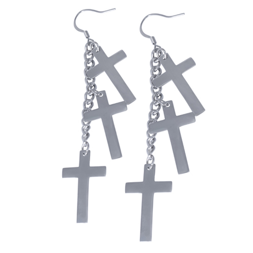 STAINLESS STEEL EARRING WITH 3 CROSS ALL IN S/S COLOR