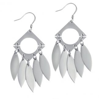 STAINLESS STEEL EARRING WITH SQUARE WITH 5 OVAL CHARMS ALL IN S/S COLOR