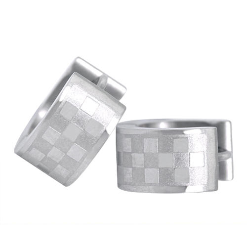 STAINLESS STEEL HUGGIE EARRING WITH CHECKERS PATTERN ALL IN S/S COLOR