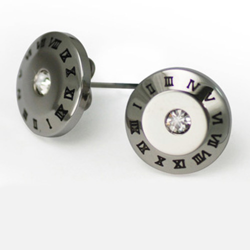 STAINLESS STEEL EARRING IN CIRCLE SHAPE WITH ROMAN NUMBERS & CZ ALL IN S/S COLOR
