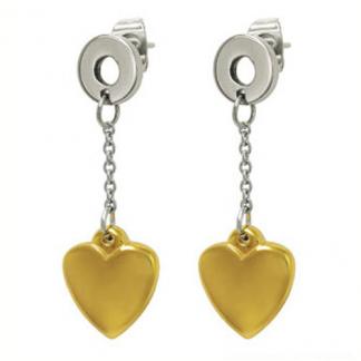 STAINLESS STEEL EARRING WITH CIRCLE & HEART CHARMS IN IPG TWO TONES
