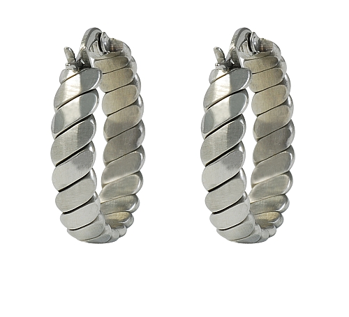 STAINLESS STEEL EARRING IN ROUND SHAPE IN SATIN & POLISH 2 TONES ALL IN S/S COLOR