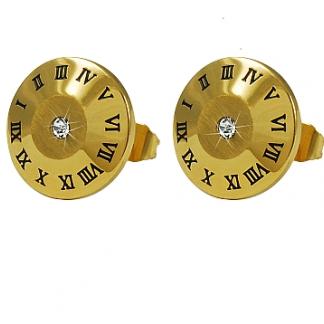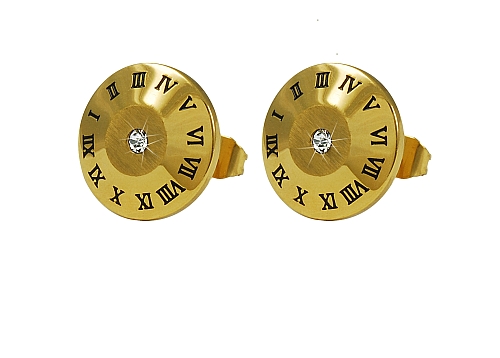 STAINLESS STEEL EARRING IN CIRCLE SHAPE WITH CZ WITH ROMAN NUMBERS ALL IN IPG COLOR