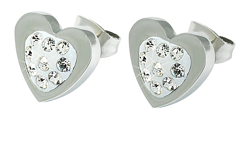 STAINLESS STEEL EARRING IN HEART SHAPE WITH CZ ALL IN S/S COLOR