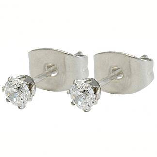 STAINLESS STEEL EARRING WITH ROUND CZ ALL IN S/S COLOR