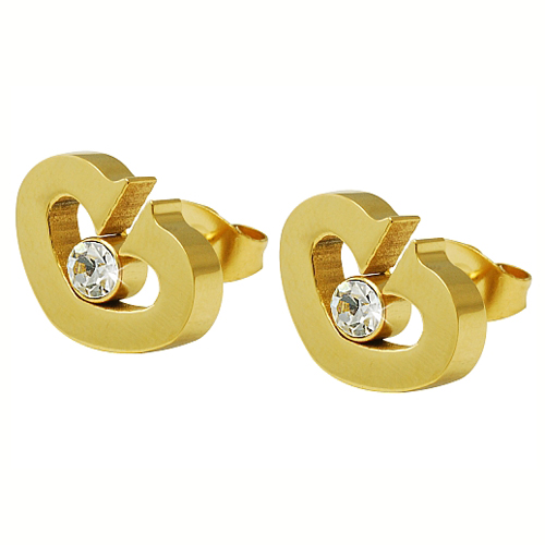 STAINLESS STEEL EARRING IN HEART SHAPE WITH CZ ALL IN IPG COLOR