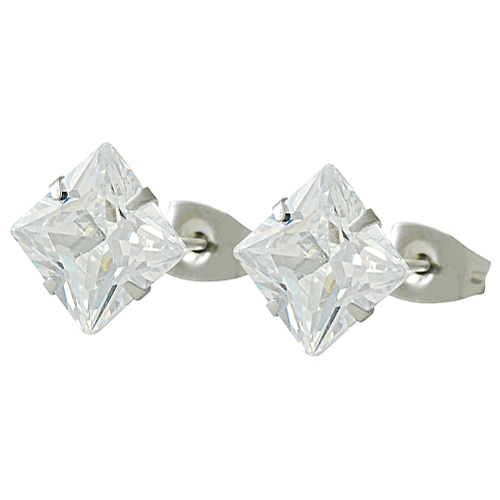 STAINLESS STEEL EARRING IN SQUARE SHAPE 8MM CZ ALL IN S/S COLOR