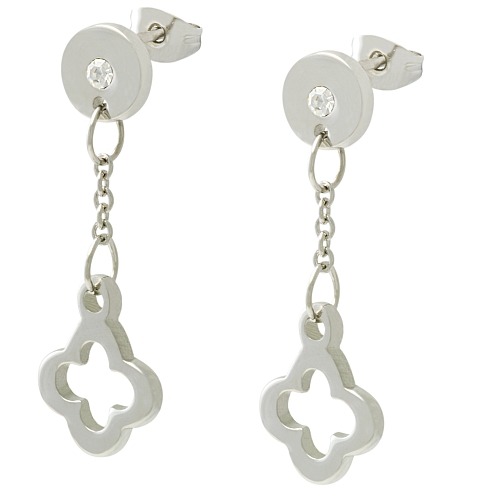 STAINLESS STEEL EARRING IN FLOWER SHAPE WITH CZ ALL IN S/S COLOR