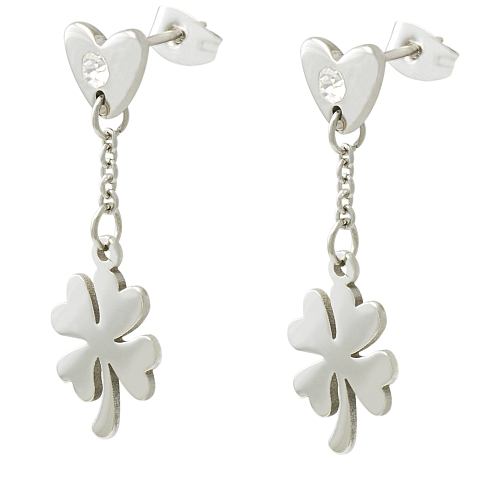 STAINLESS STEEL EARRING WITH CLOVER SHAPE WITH CZ ALL IN S/S COLOR