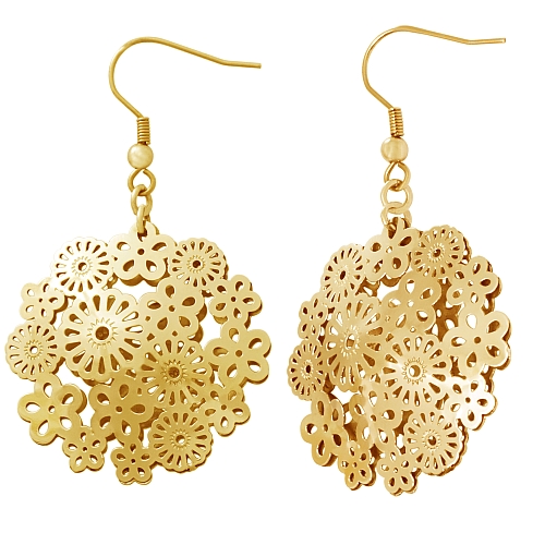STAINLESS STEEL EARRING IN FLOWER SHAPE WITH CZ (front & back side in Soldered) ALL IN IPG COLOR