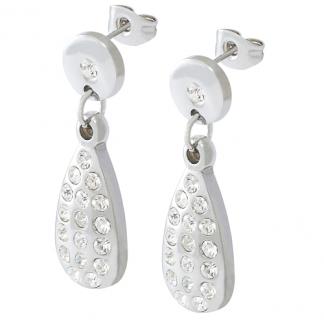 STAINLESS STEEL EARRING TEAR DROP SHAPE WITH CZ ALL IN S/S COLOR
