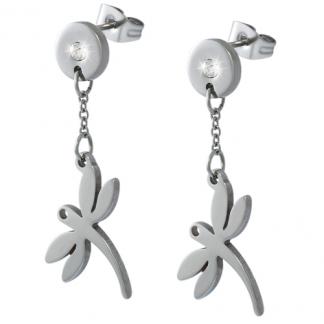 STAINLESS STEEL EARRING IN DRAGONFLY SHAPE WITH CZALL IN S/S COLOR