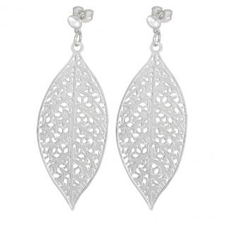 STAINLESS STEEL EARRING IN LEAF SHAPE WITH CZ ALL IN S/S COLOR