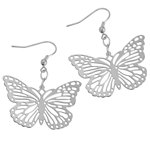 STAINLESS STEEL EARRING IN BUTTERFLY SHAPE WITH HOLES CUT OUT ALL IN S/S COLOR