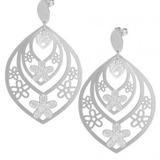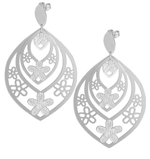 STAINLESS STEEL EARRING IN LEAFS & FLOWER SHAPE WITH HOLES CUTOUT ALL IN S/S COLOR