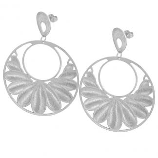 STAINLESS STEEL EARRING IN ROUND SHAPE WITH FLOWER PATTERN ALL IN S/S COLOR