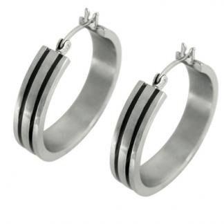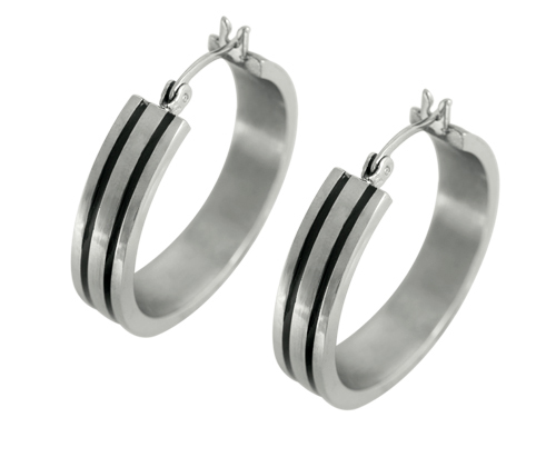 STAINLESS STEEL HUGGIE EARRING IN ROUND SHAPE WITH DOUBLE STRIP PATTERN IN IPB COLOR