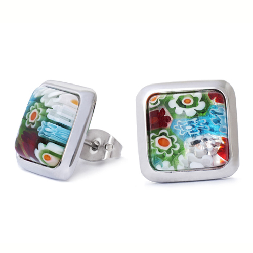 STAINLESS STEEL EARRING WITH MURANO STONES IN SQUARE SHAPE IN S/S COLOR