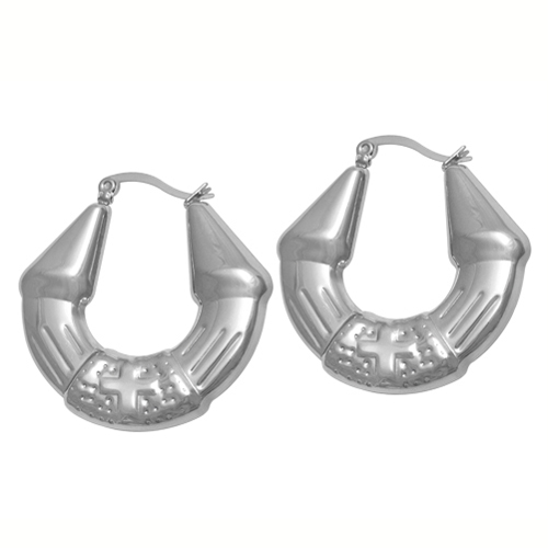 STAINLESS STEEL EARRINGS IN SPECIAL ROUND SHAPE WITH CROSS AT CENTERALL IN S/S COLOR
