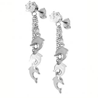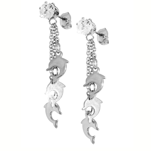 STAINLESS STEEL EARRING WITH 3 DOLPHIN SHAPE EARRING WITH CZ IN S/S COLOR
