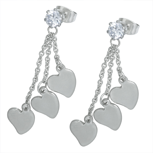 STAINLESS STEEL EARRING WITH 3 HEART SHAPE EARRING WITH CZALL IN S/S COLOR