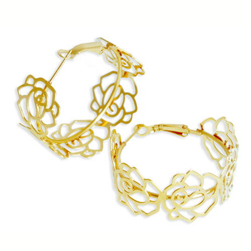 STAINLESS STEEL EARRINGS WITH 5 ROSES PATTERN ALL IN IPG COLOR