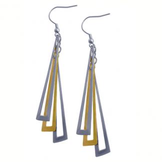 STAINLESS STEEL EARRINGS WITH 3 PCS TRIANGLE IN IPG OR IPB TWO TONE