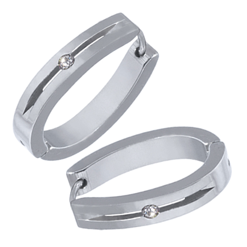 STAINLESS STEEL HUGGIE EARRING WITH CZ ALL IN S/S COLOR
