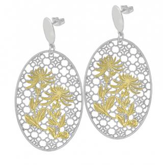 STAINLESS STEEL EARRING IN OVAL SHAPE WITH FLOWER IN IPG TWO TONES