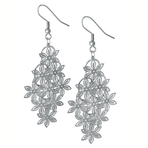 STAINLESS STEEL EARRING WITH 9PCS FLOWER DROPS ALL IN S/S COLOR