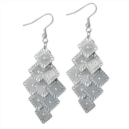 STAINLESS STEEL EARRING WITH 9PCS SQUARE DROPS ALL IN S/S COLOR